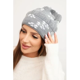 Dámská zimní pletená čepice se vzorem sněhových vloček K463 šedá