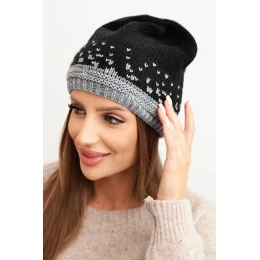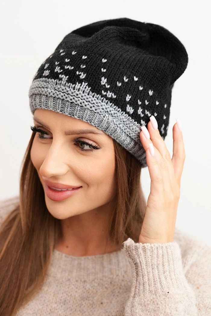 Dámská zimní čepice z vlny s geometrickým vzorem K477 černá + šedá