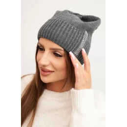 Dámská zimní čepice vlněná s krystaly K453 grafitová