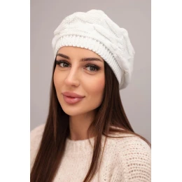 Dámská zimní čepice z vlny s ozdobným pletením a džetami K397 bílá