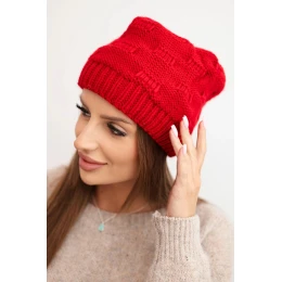 Dámská zimní čepice z vlny s ozdobným pletením K451 červená