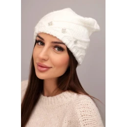 Dámská zimní čepice z vlny s ozdobnými zirkony a pleteným vzorem K396 bílá