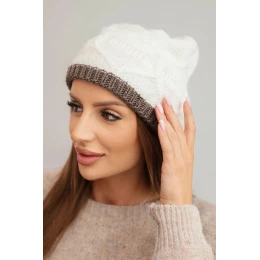 Dámská zimní čepice z vlny s proplétaným vzorem K443 ecru