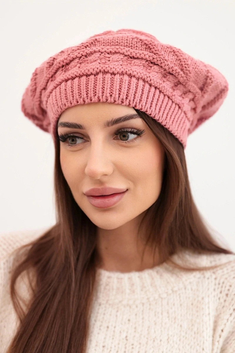 Stylová dámská čepice volného střihu typu beret, vyrobená z měkké příze s výrazným pletením. Skvěle se hodí do zimních dnů, spojuje komfort nošení s výjimečným vzhledem. Elastický lem dobře drží čepici na hlavě, zároveň netlačí.