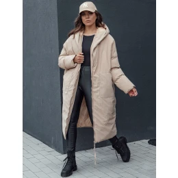 Dámská zimní dlouhá bunda oversize s kapucí MELVIN tmavě béžová FashionStreet TY4509