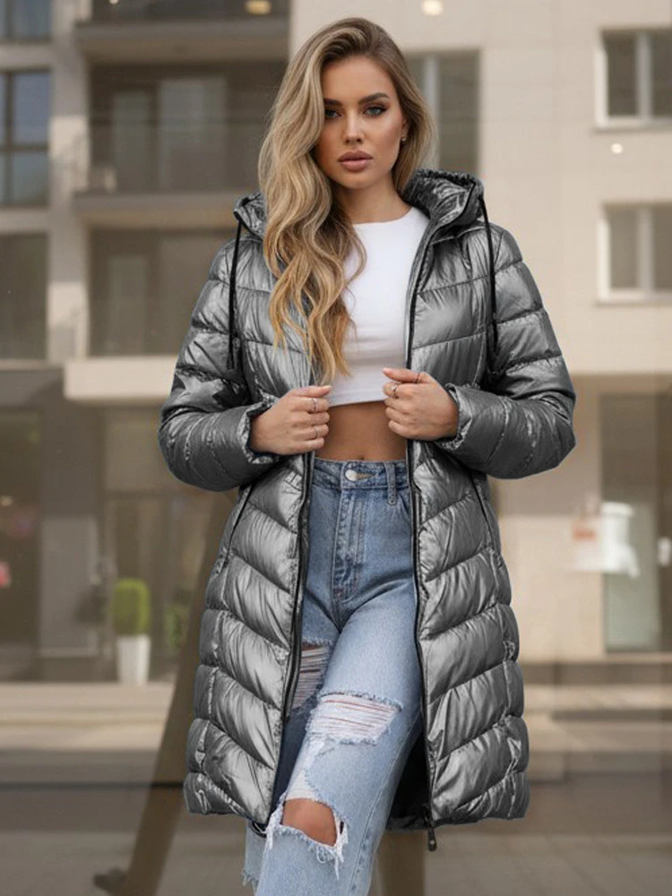 Dámská zimní dlouhá prošívaná stříbrná bunda FashionStreet TY5503