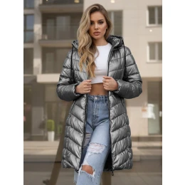 Dámská zimní dlouhá prošívaná bunda s kapucí TY5503 stříbrná