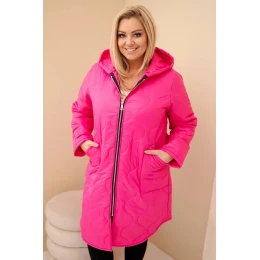 Dámská zimní péřová bunda Plus Size s kapucí neonově růžová