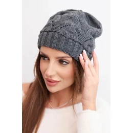Dámská zimní pletená čepice s krajkovým vzorem K427 grafitová