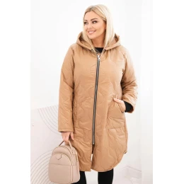 Dámská zimní prošívaná bunda Plus Size s kapucí camelová