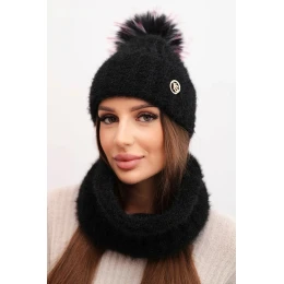 Dámská zimní souprava s bambulí a nákrčníkem černý