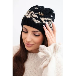 Dámská zimní čepice s norským vzorem a silným pletením K351 černý+tmavě béžový