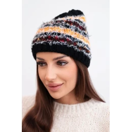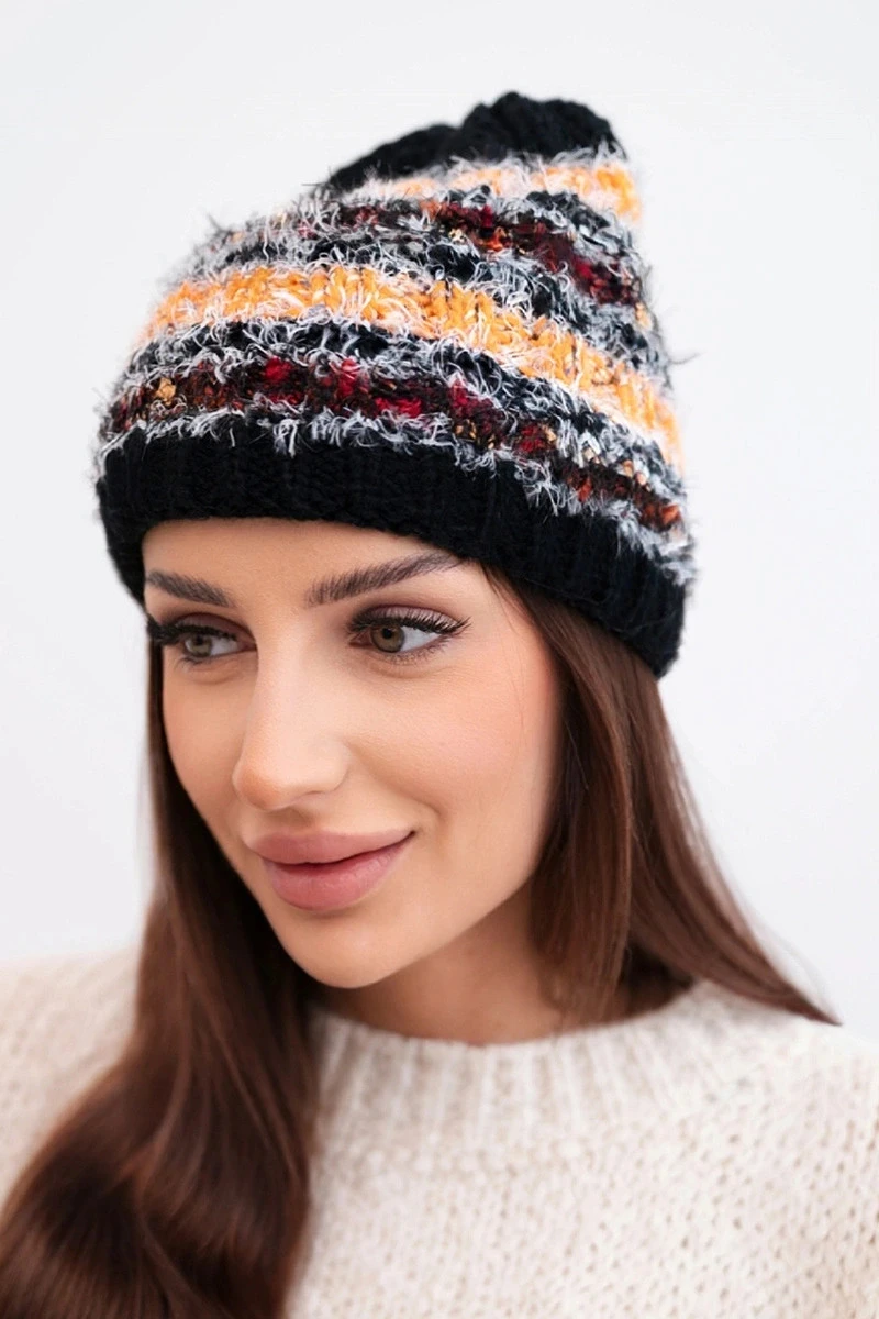 Stylová dámská čepice na zimu vyrobená z barevné, nadýchané příze s jedinečným vzhledem. Kombinace různých textur a barev jí dodává módní, pozornost přitahující charakter. Silný pletený vzor a elastický náplet zajišťují pohodlí nošení a účinnou ochranu před zimou a větrem.