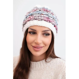 Dámská zimní čepice s barevným vláknem a elastickým stahováním K352 bílá+modrá+tmavě růžová