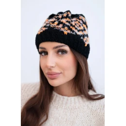 Dámská zimní čepice s barevnými vzory a silným nápletem K353 černá+oranžová