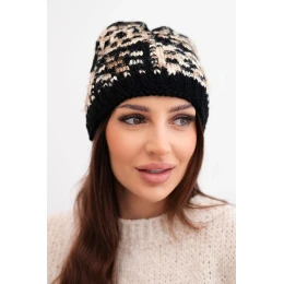 Dámská zimní čepice s barevným vláknem a silným lemem K355 černý+béžový