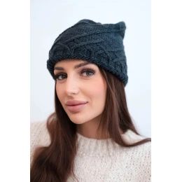 Dámská zimní čepice z vlny s ozdobným vzorem K403 grafitová