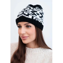 Zimní dámská čepice z vlny s norským vzorem K354 černý+bílý