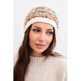 Dámská zimní čepice s barevným vláknem a elastickým stahováním K352 ecru+zelený+camelový