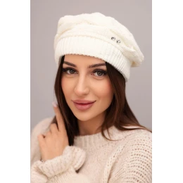 Dámská zimní vlněná čepice se zdobnými krystaly K399 ecru