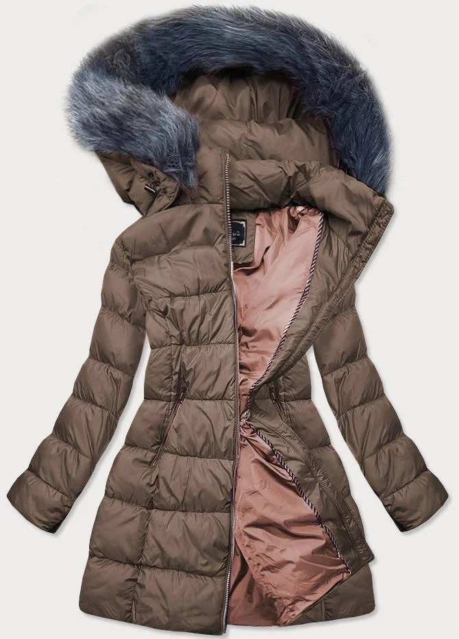 Bunda je lehce vypasovaná, je zateplená syntetickou péřovou výplní a má dvě kapsy. Model má kapuci olemovanou kožešinou. Kapuci i kožešinu je možné odepnout. Na koncích rukávů jsou skryté stahovací lemy.