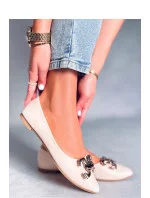 Elegantní dámské baleríny. Model se vyznačuje zlatou aplikací na přední straně, která dodává jedinečný styl..... Boty vypadají módně a elegantně, navíc jsou velmi pohodlné - mají měkkou vnitřní stélku s polštářkem. Vnější materiál - ekologická kůže.