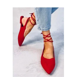 Dámské semišové baleríny s otevřeným podpatkem. Oči upoutá smyslné vázání, které zvýrazňuje kotník, a tvarovaný střih se zúženým nosem..... Pokud chcete vypadat výjimečně, musíte je mít Vnější materiál - ekologický semiš.