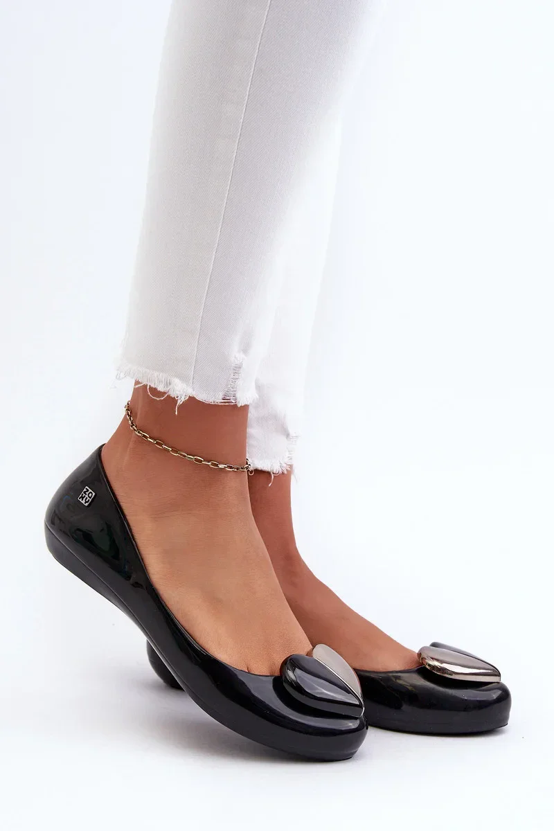 Nádherná kolekce voňavých balerínků ZAXY. Jsou vyrobeny technologií HUG TEC, díky které jsou pružnější a měkčí. Jsou 100% recyklovatelné a neobsahují ftaláty, tedy chemické sloučeniny zodpovědné za pružnost materiálů, jako je pryž a plast. Zdobené krásným srdcem, které jim dodává neuvěřitelné kouzlo. Pohodlná stélka zajistí pohodlí vašich nohou. Tyto boty jsou veganské a hypoalergenní. Při výběru velikosti se prosím řiďte tabulkou velikostí.