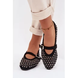 Dámské baleríny s krajkovým vzorem s kamínky a páskem Černé Wilvessa