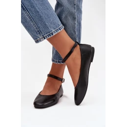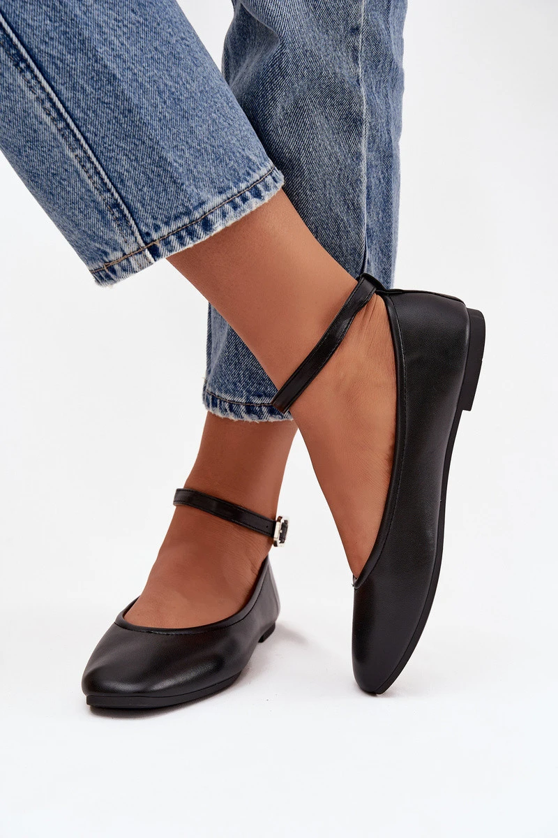 Dámské baleríny s páskem a přezkou Černé Janelor