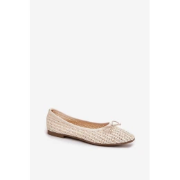 Dámské baleríny s pletením a mašlí Belirra – ecru