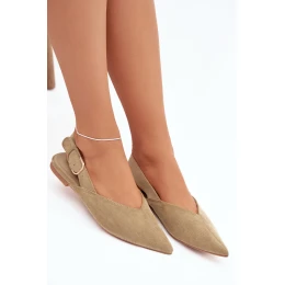 Dámské baleríny vyrobené z ekologické semiše jsou stylovou a pohodlnou volbou na každý den. Model na ploché podrážce zaručuje komfort a špičaté nosky dodávají eleganci a jemně zeštíhlují nohu. V zadní části je nastavitelné pásko zakončené velkou dekorativní přezkou, která přitahuje pozornost a je módním akcentem. Tyto baleríny jsou ideální pro ženské, moderní outfity. Při výběru velikosti se řiďte tabulkou velikostí.