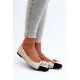 Dámské baleríny z ekologické kůže s ozdobným detailem béžové Divinella