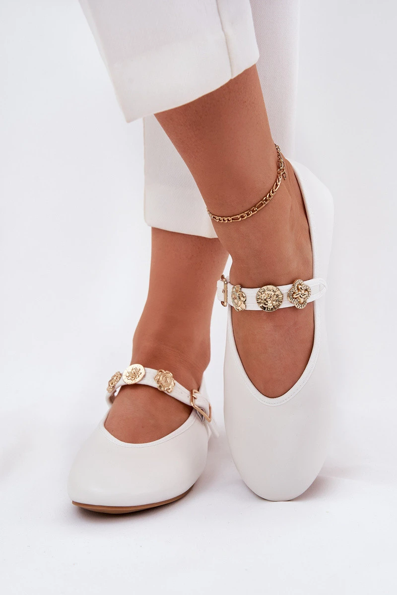 Dámské Baletky S Páskem A Zlatými Dekoracemi Bílé Firicene