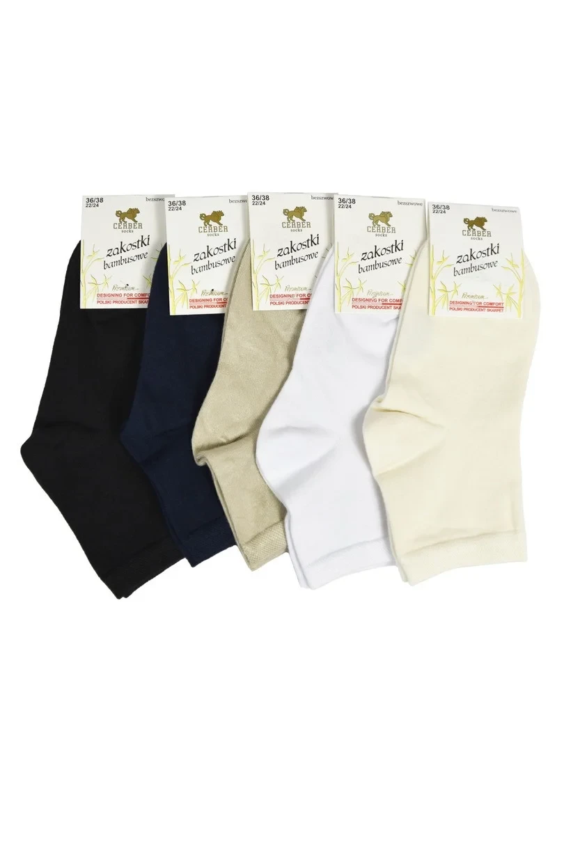 Odkryj wyjątkowy komfort i naturalną świeżość z damskimi skarpetkami zakostkowymi CERBER 1258 wykonanymi z celulozy bambusowej. Ich delikatna, oddychająca tkanina bambusowa zapewnia idealną cyrkulację powietrza, co czyni je doskonałym wyborem na każdą porę roku. Dzięki domieszce elastanu i poliamidu, skarpetki świetnie dopasowują się do stopy, nie uciskając i nie zsuwając się podczas noszenia. Są idealne do codziennego użytku – w pracy, podczas spacerów czy aktywności fizycznej.