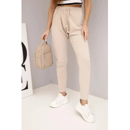 Dámské tepláky s elastickým pasem a šňůrkou béžové