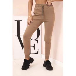 Dámské bavlněné cargo kalhoty s kapsami a řetízkem béžové