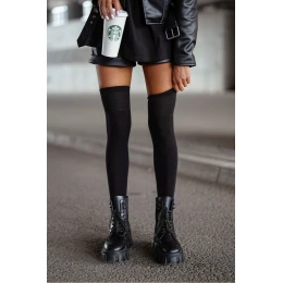 Dámské bavlněné hladké černé podkolenky