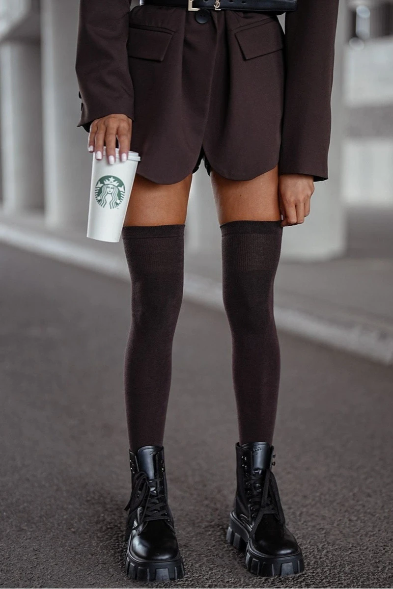 Dámské bavlněné hladké hnědé podkolenky
