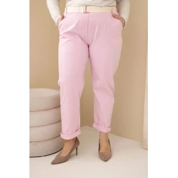 Dámské bavlněné kalhoty Plus Size s páskem světle růžové