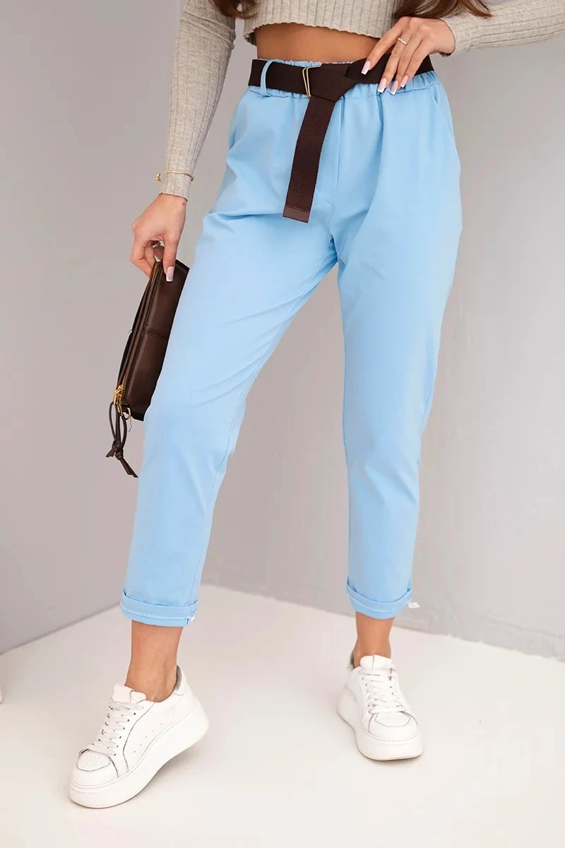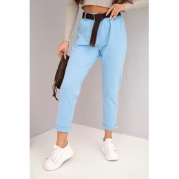 Dámské bavlněné kalhoty s páskem a ohrnutým lemem modré