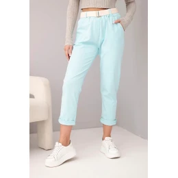 Dámské bavlněné kalhoty s páskem a ohrnutým nohavicí mátové