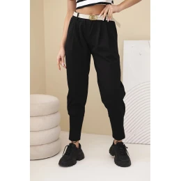 Dámské bavlněné kalhoty s vysokým pasem a opaskem černé