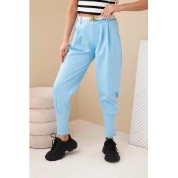 Dámské bavlněné kalhoty s vysokým pasem a páskem modré