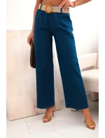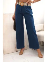 Dámské kalhoty z viskózy se širokými nohavicemi džínovina