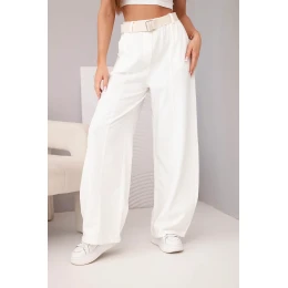 Dámské bavlněné kalhoty se širokými nohavicemi a páskem ecru