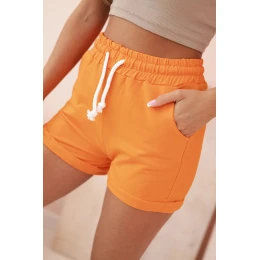 Dámské bavlněné kraťasy s gumou a šňůrkou v pase oranžové