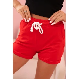 Dámské bavlněné kraťasy s gumou a zavazováním v pase červené