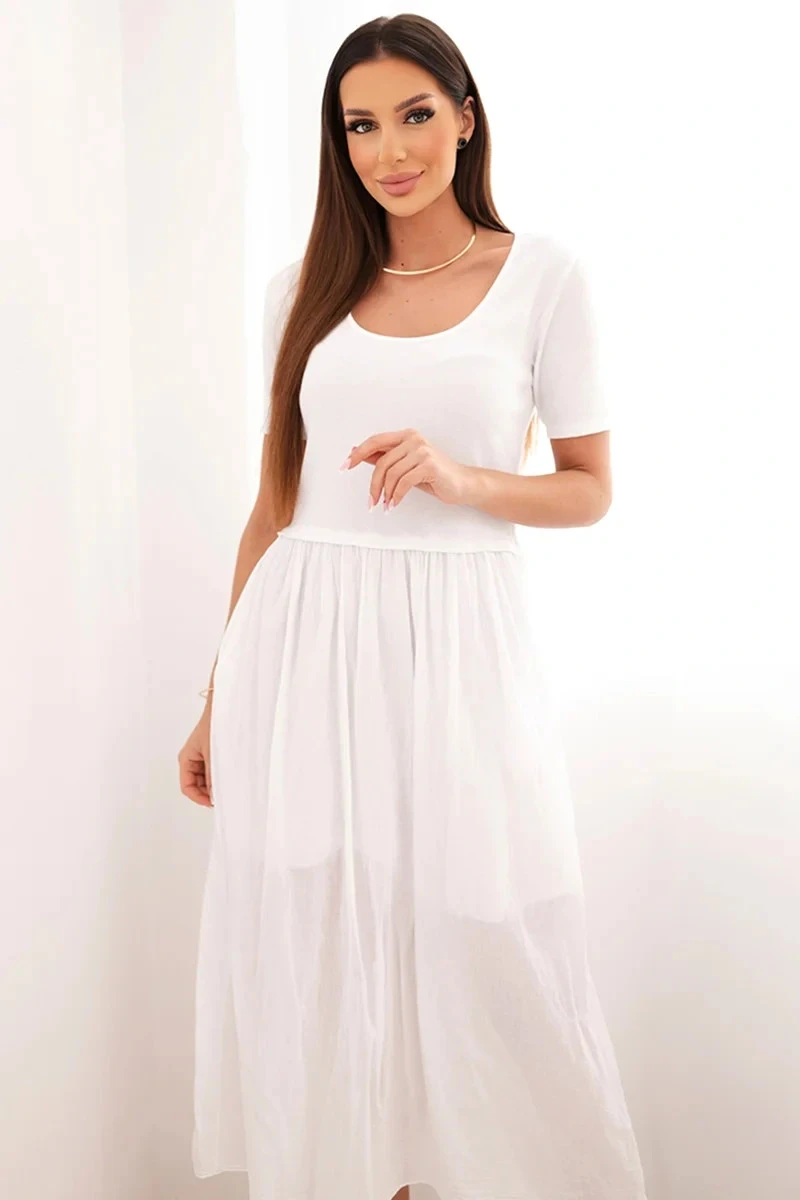 Dámské bavlněné midi šaty s krátkým rukávem a rozšířeným spodkem bílá