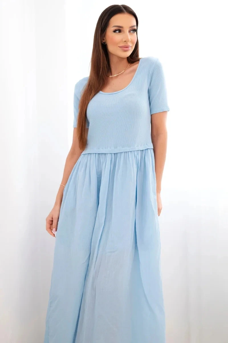 Dámské bavlněné midi šaty s krátkým rukávem a rozšířeným spodkem modrá